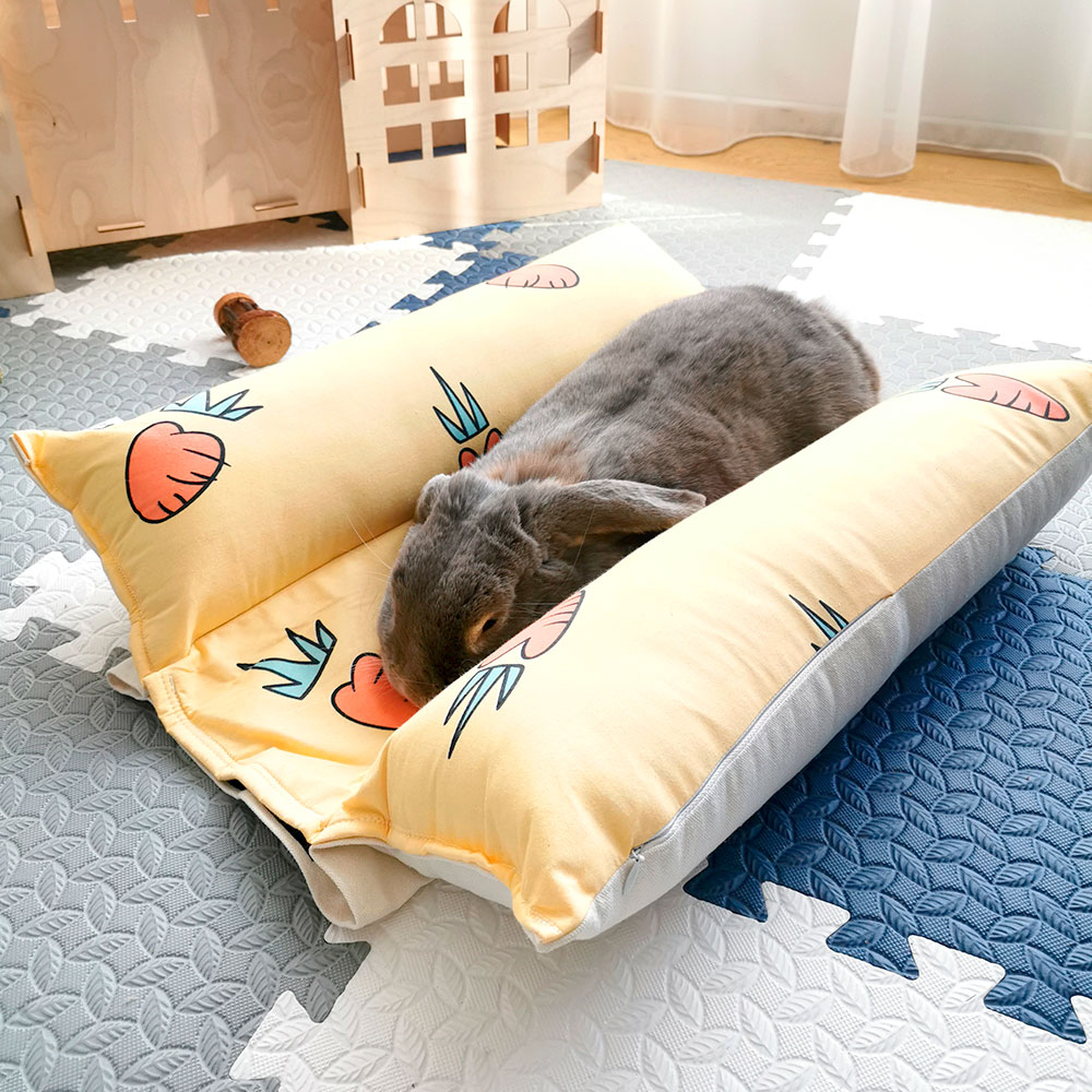 Eine kühlende Kaninchenmatte in gelb Ungiftig