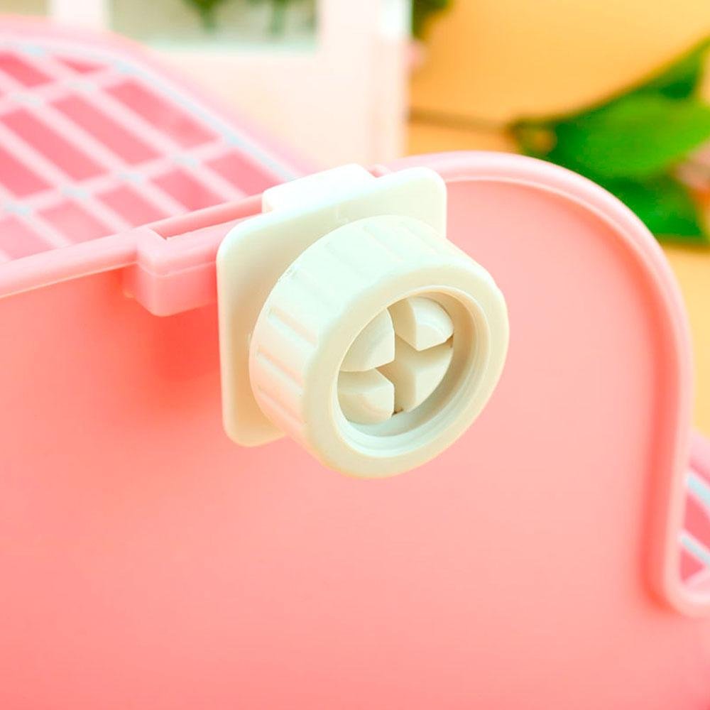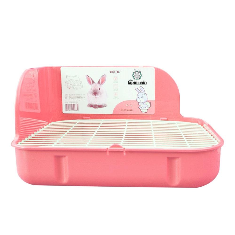 Die Kaninchentoilette wird an den Gitterstäben des Käfigs oder Geheges Ihres Kaninchens befestigt, damit es sich nicht bewegen kann. Die Kunststoffabdeckung schützt die Wände vor Schmutzspritzern.