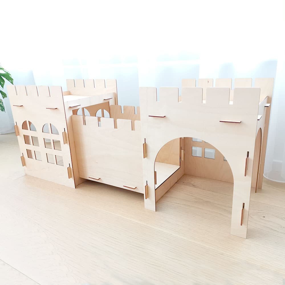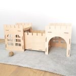 Der Kaninchenstall für drinnen ist aus Birkenholz gefertigt. Diese originelle und lustige Installation wurde speziell für Ihren kleinen Freund entworfen. Die Kanten sind nicht scharf, was für Ihr Kaninchen sicher ist. Es lässt sich ganz einfach zu einer hölzernen Kaninchenburg zusammenbauen. Und wenn es einmal zusammengebaut ist, bleibt es dank des starken und haltbaren Materials an seinem Platz. Sie brauchen kein Werkzeug, um es zusammenzubauen!