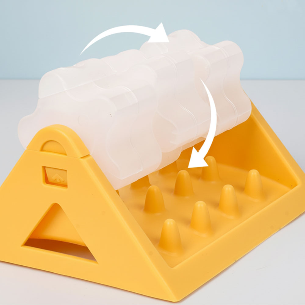 Questo giocattolo per conigli funziona con un sistema di scomparti da far ruotare, nei quali puoi nascondere piccoli premi, pezzetti di frutta come la mela per esempio. Sta a lui trovarli!