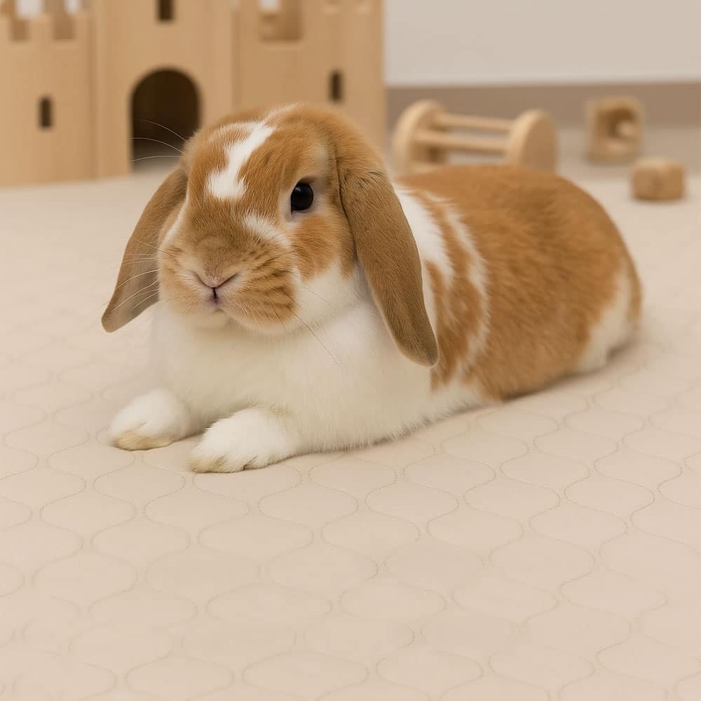 En dat is nog niet alles—je kunt deze mat ook onder een andere mat leggen voor extra bescherming van je vloer, vooral als je konijn wel eens ongelukjes heeft. Het is het ideale konijnenaccessoire als je op zoek bent naar een mat die je vloer beschermt! 💖