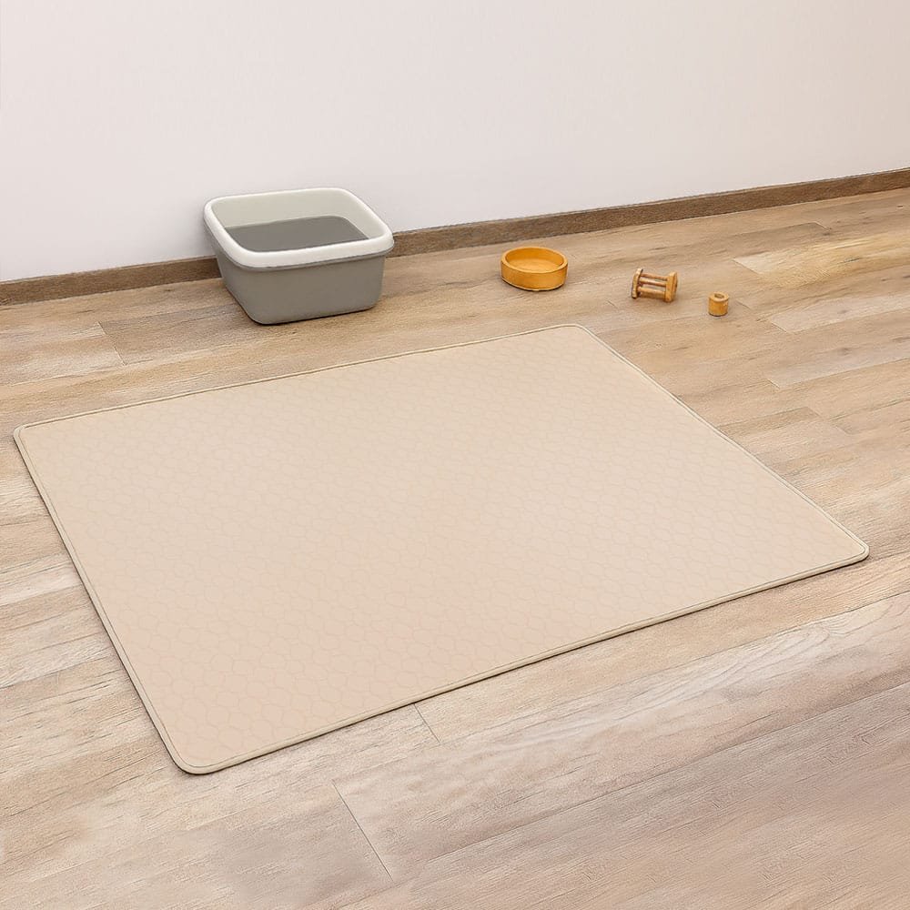 Wil je dat je konijn geniet van zijn ruimte en toch je vloer schoon blijft? Met deze beige absorberende mat wordt je leven een stuk makkelijker! Dankzij het royale formaat van 140 x 100 cm bedekt hij een groot speel- of rustgebied voor je konijn 🐰. Het doel? Urine en spetters opnemen, onaangename verrassingen vermijden en het gebied schoon en droog houden 🙌.
