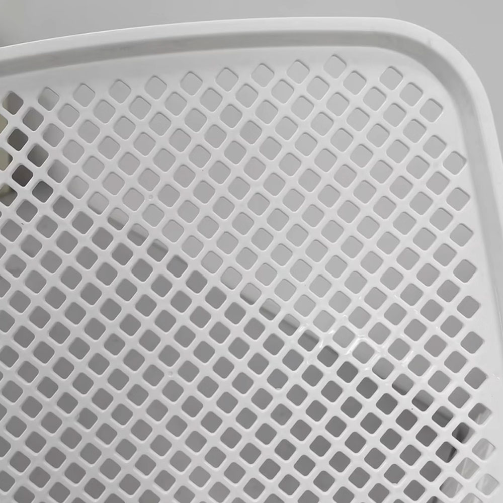 Deze konijnentoiletbak heeft een geperforeerd rooster (gaatjes van ongeveer 1 cm, precies goed voor een dwergraskonijn) zodat je konijn geen natte pootjes krijgt. Resultaat: hij blijft droog, schoon en jij hoeft minder vaak schoon te maken. Echt, je zult het magische rooster dankbaar zijn!