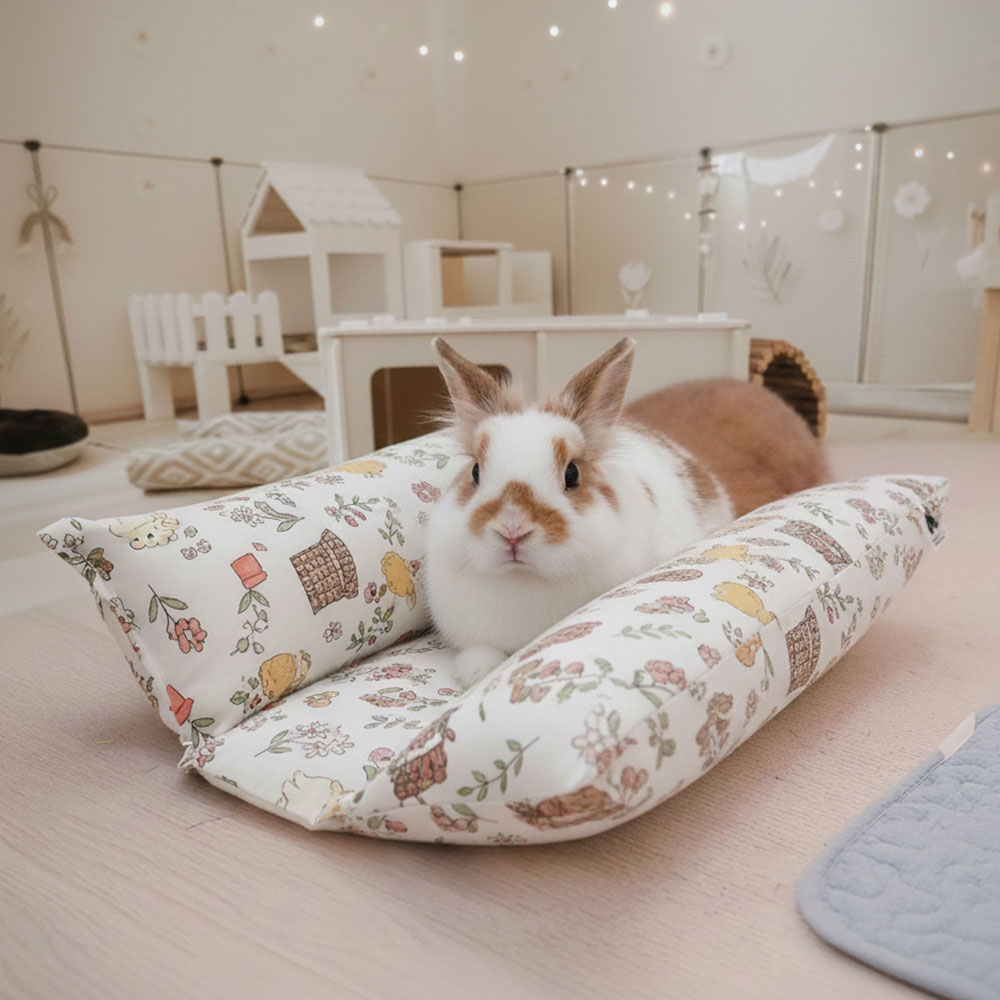Maar dit konijnenbed is niet alleen schattig. Het geeft structuur aan zijn omgeving. De rollen aan de zijkanten helpen hem te ontspannen; hij weet meteen waar hij moet zijn om te relaxen. De snug-vorm biedt hem een echt geruststellend rustpunt, wat stress vermindert (vooral bij gevoelige konijnen).