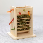 Nooit meer verspilling! Dankzij de torenvorm blijft het hooi van de grond en uit het vuil. Volledig gemaakt zonder lijm of chemische stoffen, dus volledig veilig voor je konijn. Door het compacte formaat past het makkelijk in een ren of losloopruimte.