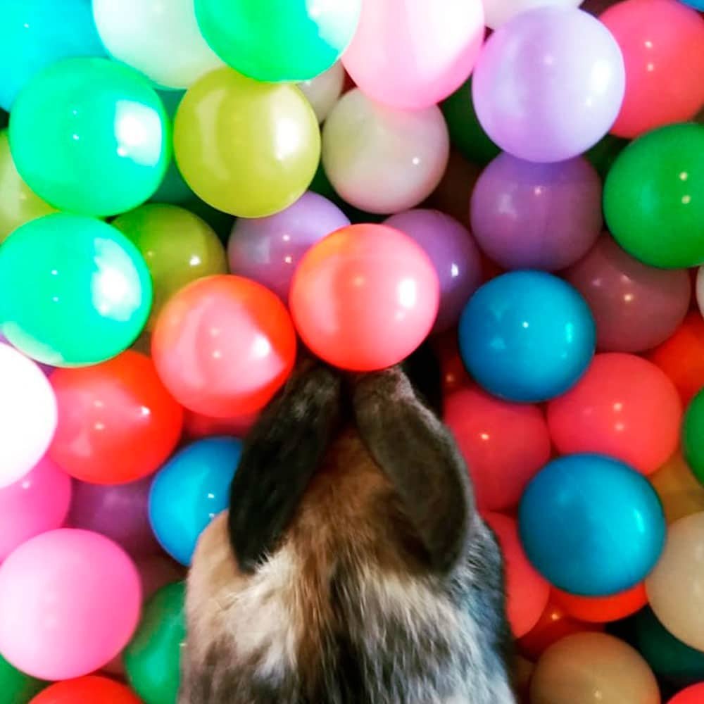 So, to play this interactive rabbit toy, all you have to do is lay out your beloved companion’s favourite treats at the bottom of the playpen and cover them with the various rabbit balls. Your bunny will then be happy to dive in to retrieve his little treats.