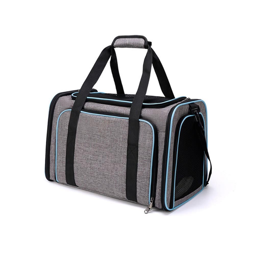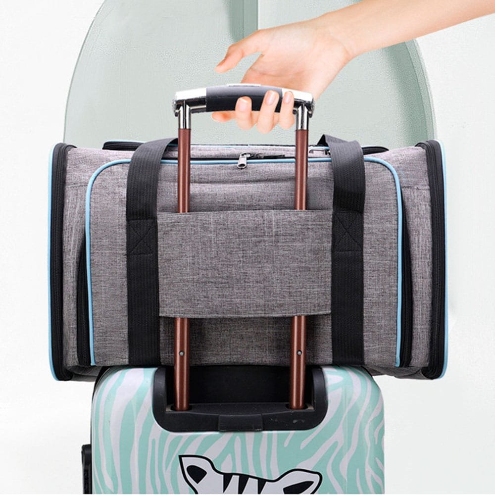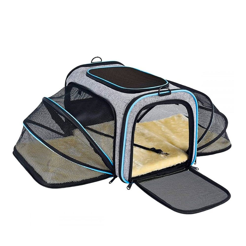 When open, the sides of this rabbit carrier with extension are made of mesh fabric. This allows air to circulate and gives your long-eared friend a clear view of his surroundings.
