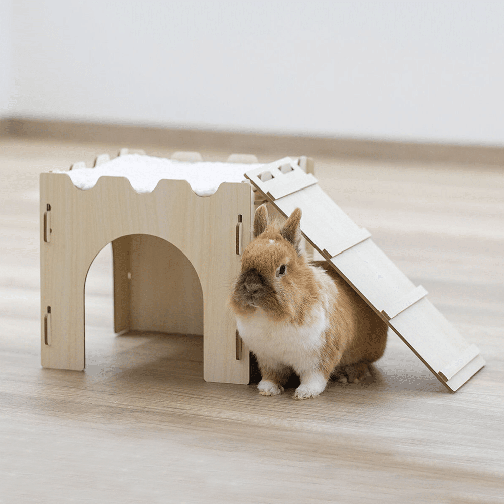 Our Rabbit Castle isn’t just a rabbit house; it’s a real playground that stimulates your companion’s imagination and activity. With its access ramp, it encourages exploration and adventure, inviting your bunny to climb and discover his environment.
